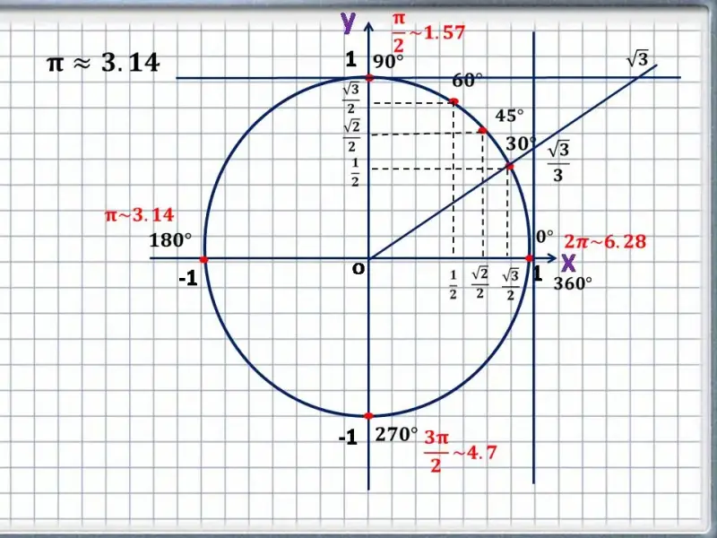 Разберем, как работать с этой окружностью. Нахождение значений угла или функции напоминает нахождение координаты точки по графику или определение положения точки по заданным координатам.