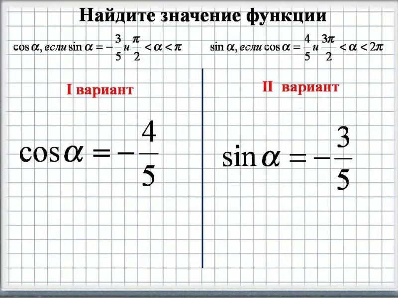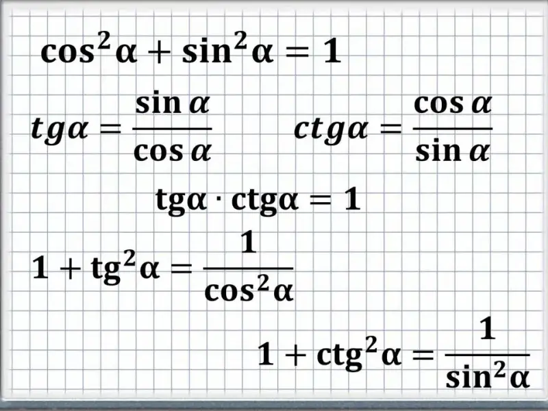 Вы должны находить значение тригонометрических функций по известному значению одной из них. Например, найти чему будет равен косинус, тангенс или котангенс какого-то угла, если синус этого же угла принимает такое-то значение. Для этого надо знать формулы, которые связывают известную и неизвестную величины. В тригонометрии их называют тригонометрические тождества.