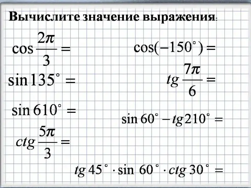 . - Найдите при помощи круга значение синуса, косинуса, тангенса, если величина угла равна: