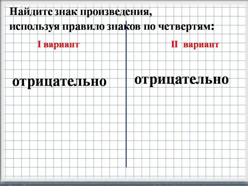 2 задание: текст задания дан на слайде презентации: найдите знак произведения: