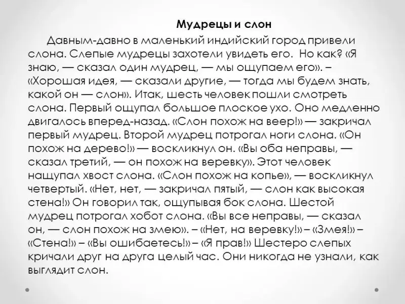 - Почему мудрецы так и не узнали, какой он слон?