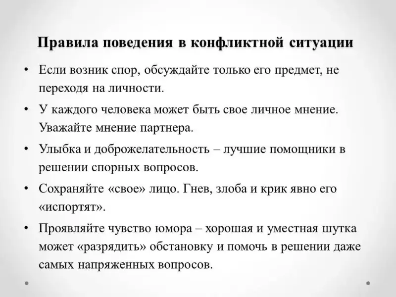 10. Правила поведения в конфликтной ситуации (на слайде)