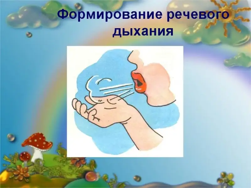Для правильного произношения звуков нашего языка необходимо правильное речевое дыхание. Для его формирования используются разные упражнения, например можно сдуть кусочек ваты с ладошки.