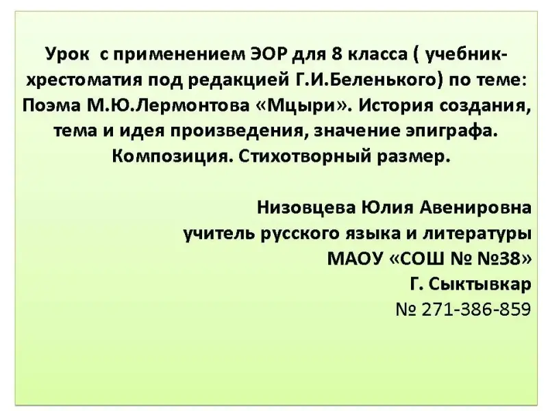 | 2. | Учебная статья " О поэме "Мцыри" | ЭУМ информационного типа |