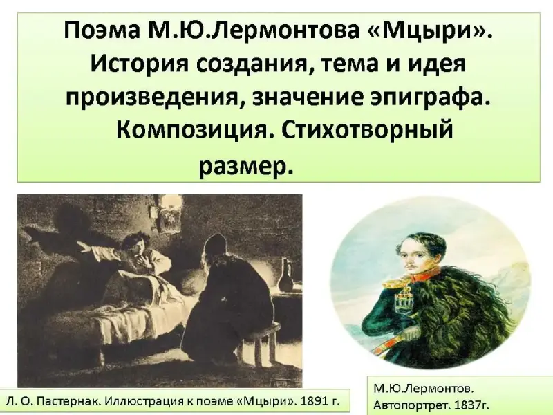 Поэма М.Ю. Лермонтова «Мцыри». История создания, тема и идея произведения, значение эпиграфа. Композиция. Стихотворный размер»