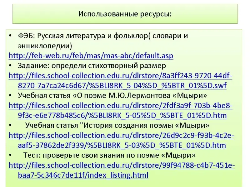 Работа с учебной статьей "О поэме "Мцыри" ЭУМ-И-типа http://files.school-collection.edu.ru/dlrstore/