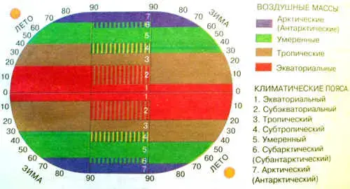 Основные климатические пояса соответствуют распространению четырех типов воздушных масс (см.рис.2)