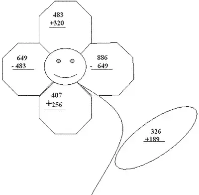 На лепестках цветка записано д/задание - примеры