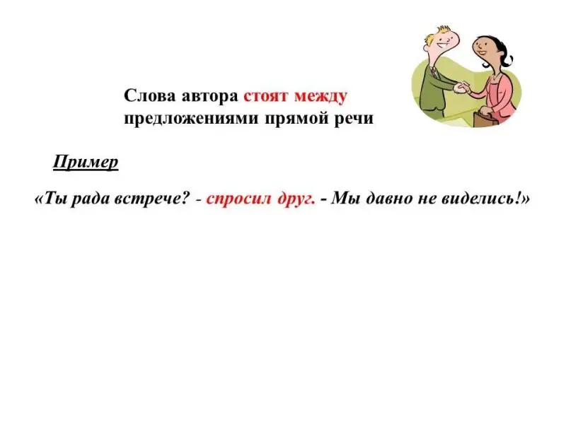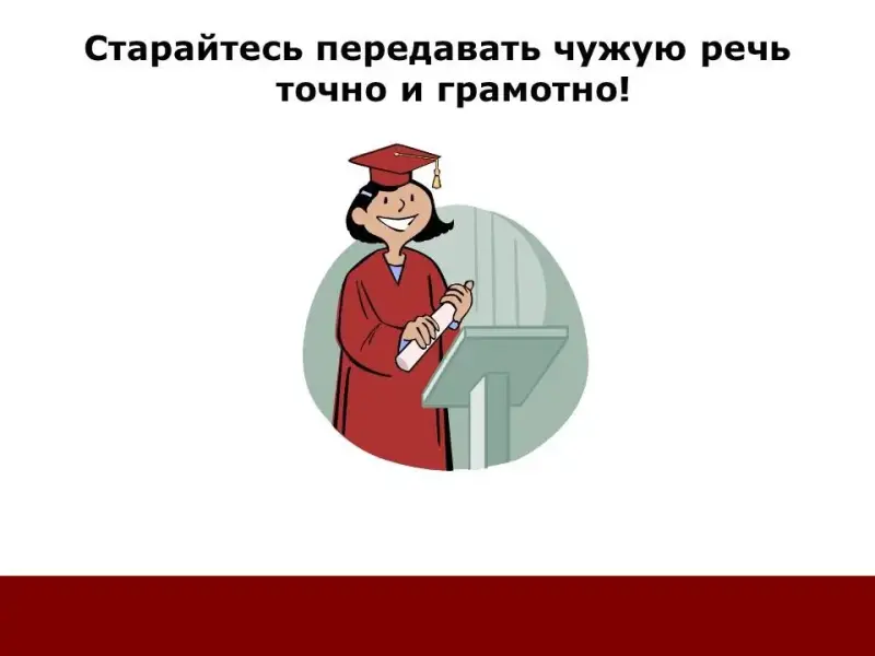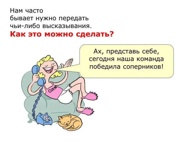 У.: Нам и в повседневной нашей жизни часто бывает нужно передать чьи-нибудь слова. Например, учитель просит вас сообщить какую-то информацию родителям. Или один ваш друг рассказал вам замечательную новость, а вы желаете срочно ее сообщить кому-то еще. Ясно, что слова надо стараться передать точно, иначе это будет неправда! Рассмотрим, как это можно сделать.