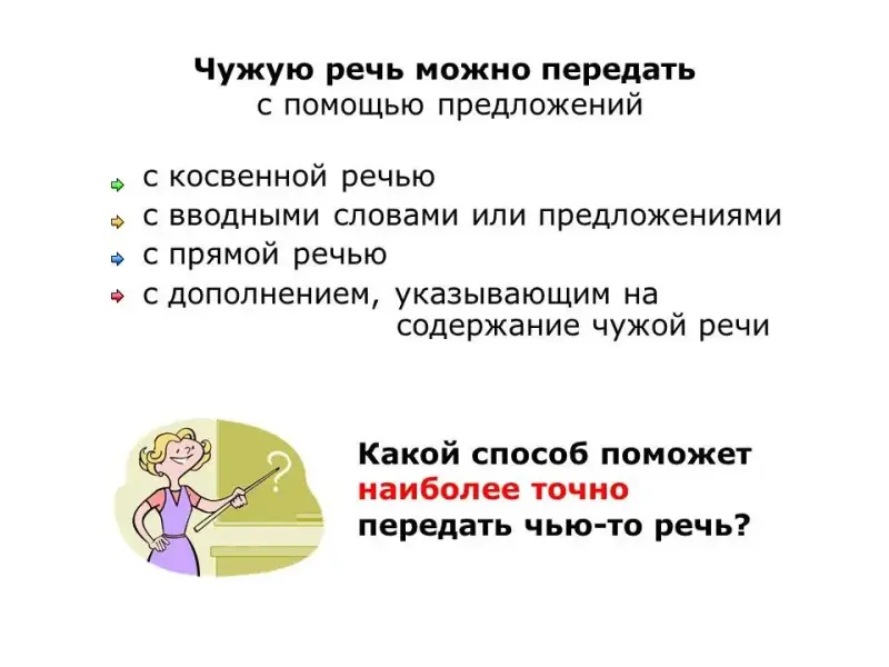 - уточнить, какие существуют способы передачи чужой речи;