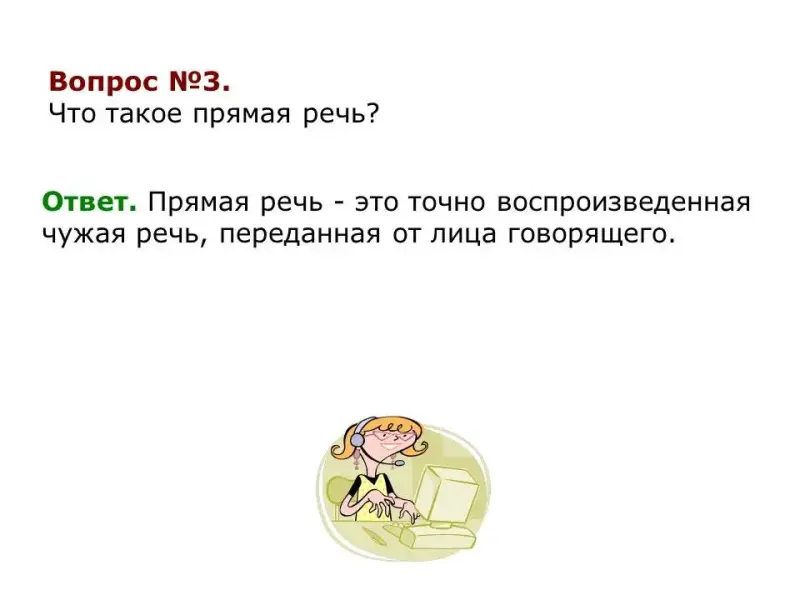 Слайд №8. Определение прямой речи.