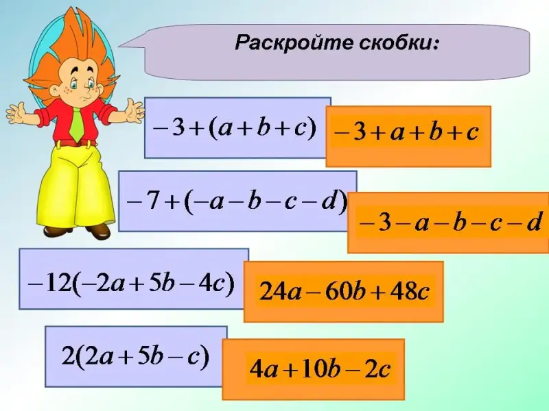 Задание №1 Раскройте скобки (Слайд №2):