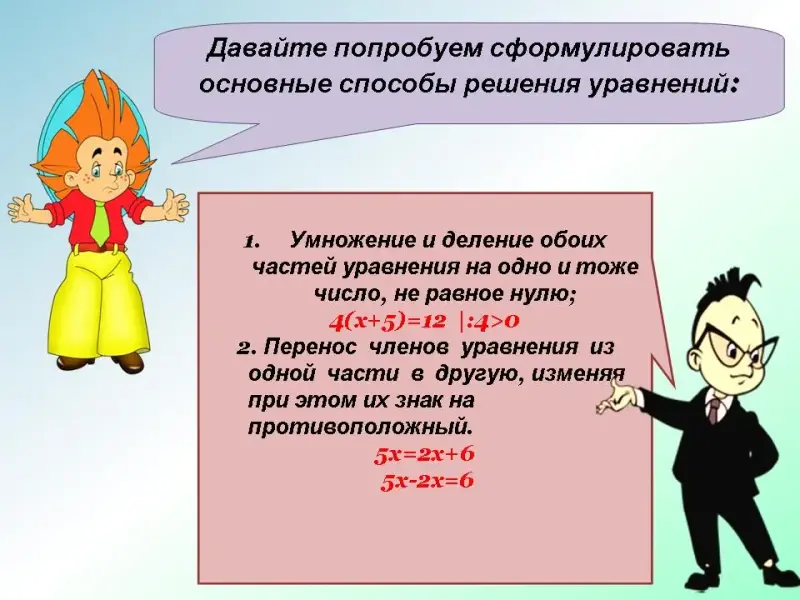 Давайте попробуем сформулировать основные способы решения уравнений. (Слайд №10)