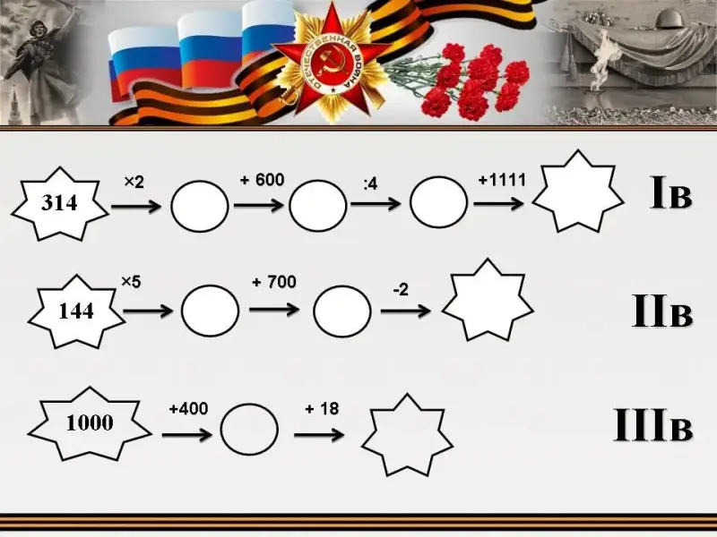 Узнать, сколько дней продолжалась ВОВ вы узнаете, решив цепочку примеров. [Сл. 23]