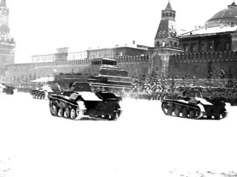 - [Сл. 40] Крупное танковое сражение произошло под столицей нашей родины Москвой. Солдаты советской армии сражались отважно, были сильны, смелы, ловки и отстояли сердце нашей Родины [Сл. 41].