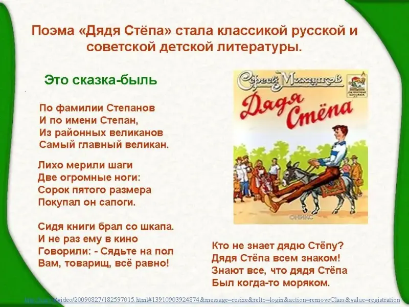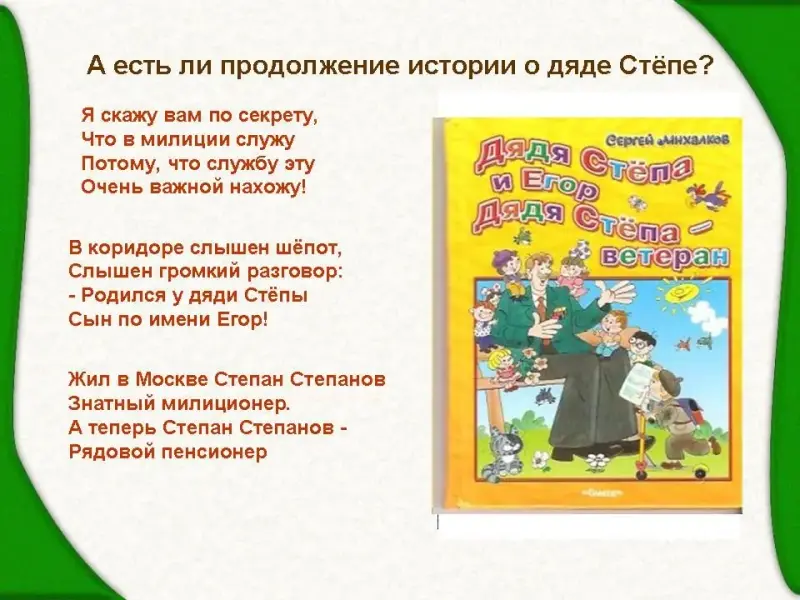 Это сказка-быль. А есть ли продолжение истории о дяде Стёпе? (ответы детей)