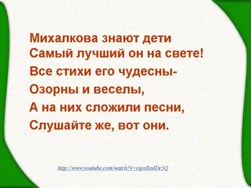 - Расширить знания детей о жизни и творчестве С.В. Михалкова