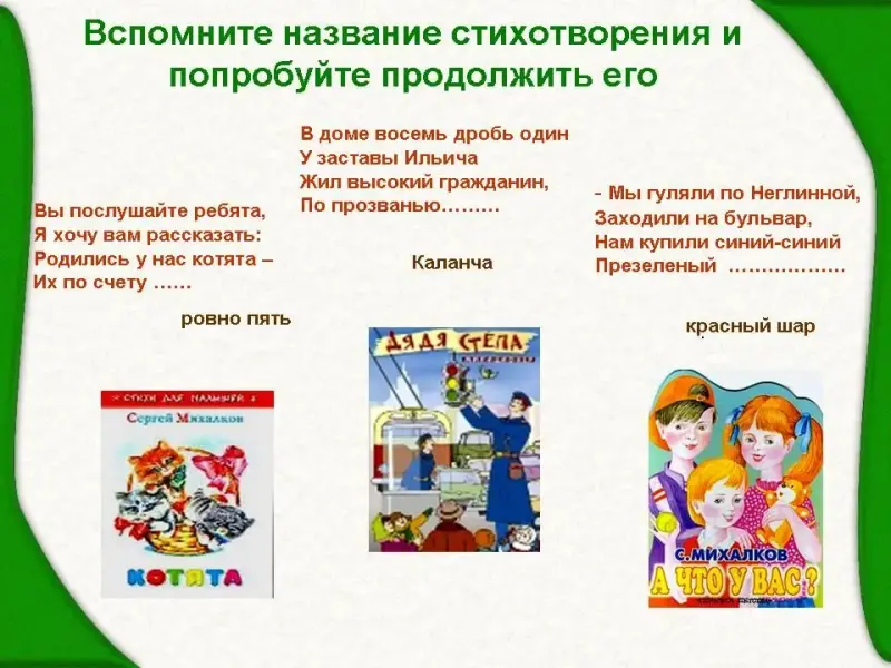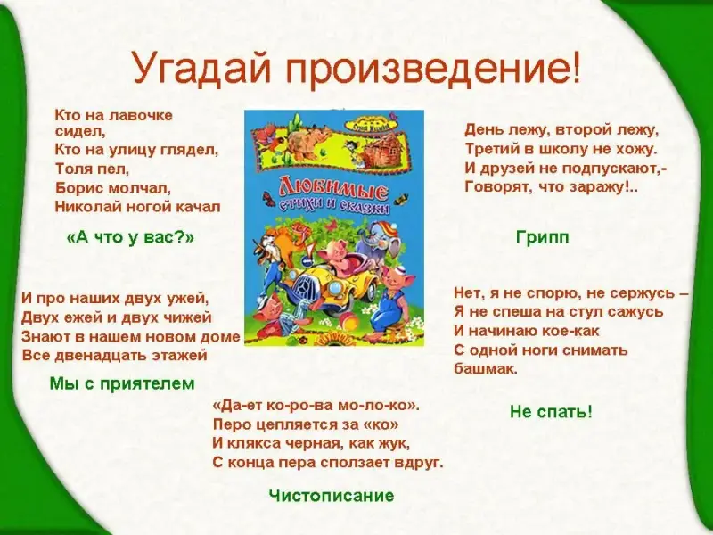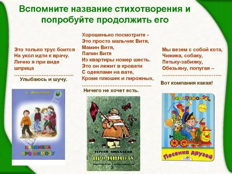 - А вы, ребята, внимательно читали произведения Сергея Владимировича? Сейчас узнаем.