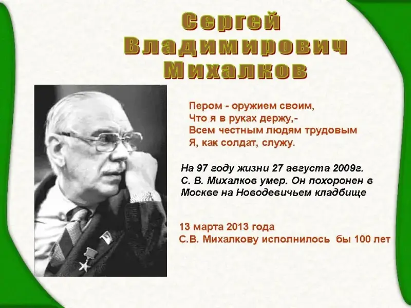 Сергей Михалков - один из самых знаменитых детских писателей, стихи его читали в детстве ваши мамы и папы, бабушки, дедушки, а может быть и прабабушки.