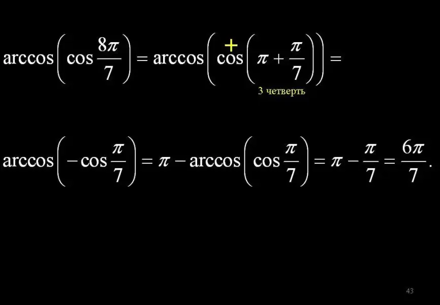Изучение свойства arcos(cost) - частично на доске (постановка проблемы), частично с помощью слайдов из №№39-43, для ускоренной проверки выполнения (пока проговаривается решение домашнего задания)