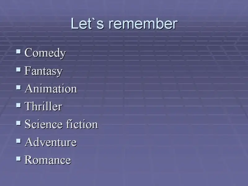 Words: comedy, fantasy, animation, thriller, science fiction, adventure, romance.