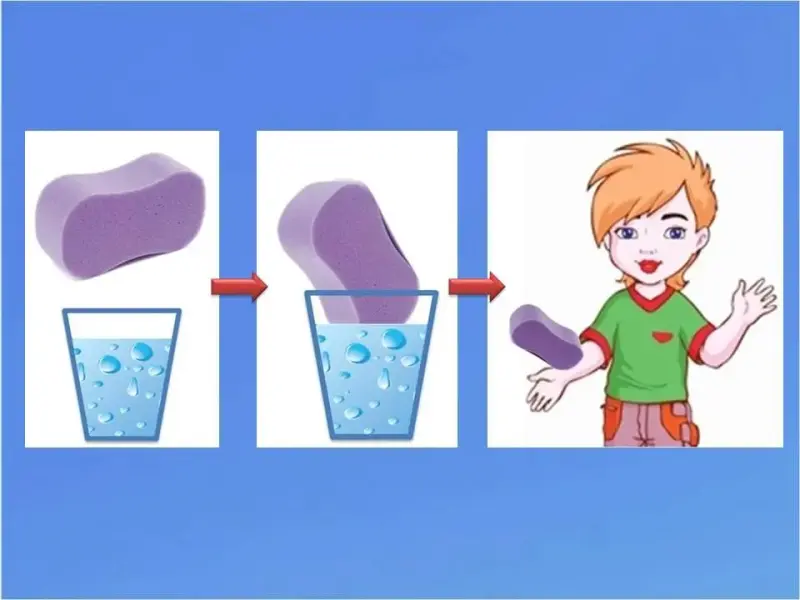 Ход опыта: Педагог выясняет, что дети чувствуют при беге, прыжках (жарко); когда жарко, что происходит (пот выступает, потом он исчезает, испаряется). Предлагает представить, что рука - листочек, с которого испаряется вода. Детям предлагается поработать в парах: один ребенок закрывает глаза, а другой смачивает губку в воде и проводит ею по внутренней поверхности предплечья своего напарника. Затем меняются ролями. Дети передают свои ощущения до полного исчезновения влаги (почувствовали прохладу). Подтверждают, что происходит с листьями, когда из них испаряется вода (они охлаждаются).