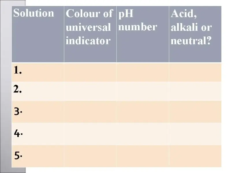 - вода, напитки "Кола", соков (апельсинового или др.), соды, мыла, универсальный индикатор.