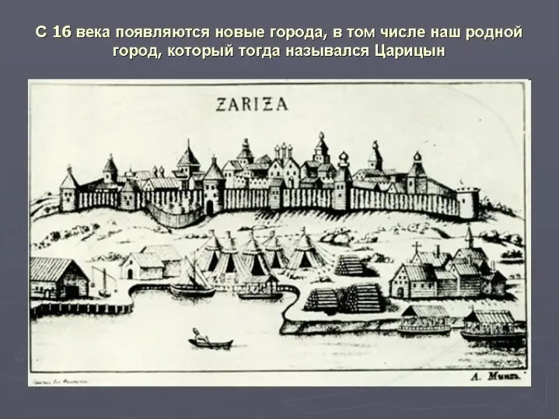 С 16 века появляются новые города, в том числе наш родной город, который тогда назывался Царицын. Слайд 7