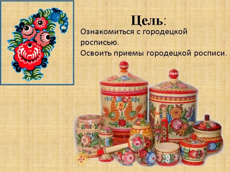 • Знать: историю городецкой росписи.