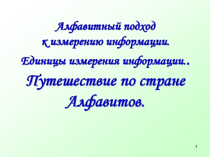 Урок-презентация по информатике. Алфавитный подход к измерению информации. Единицы измерения информации. Тема: "Путешествие по стране алфавитов"
