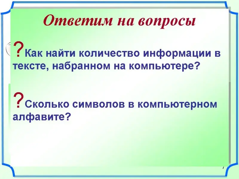 - Как найти количество информации в тексте, набранном на компьютере?