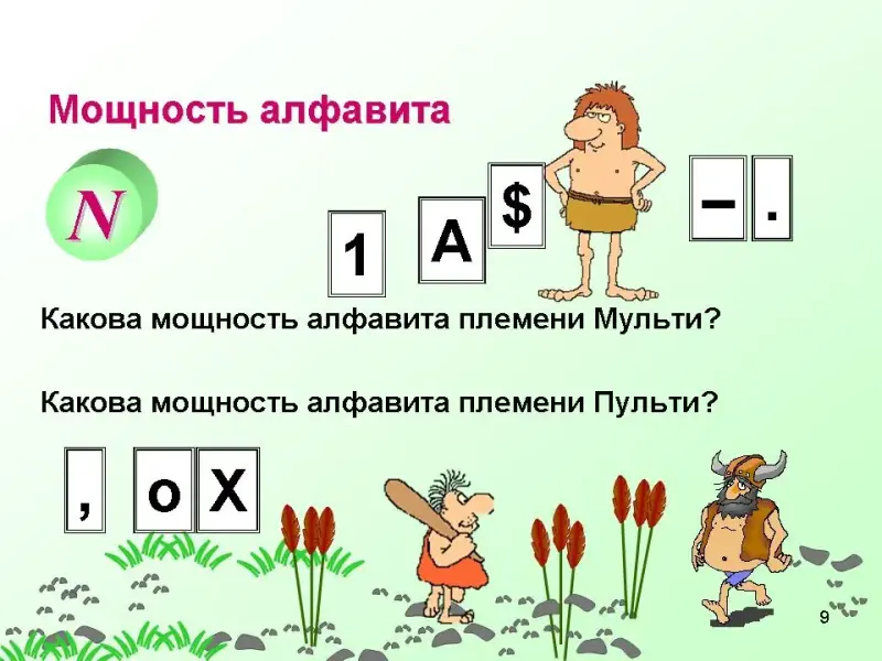 (Картинка Мульти-Пульти) Информационный вес символа зависит от мощности алфавита.