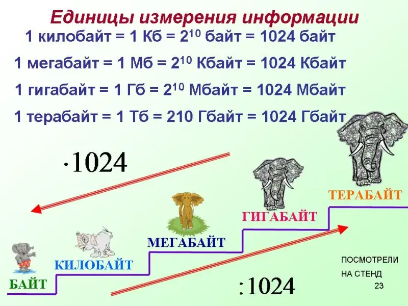 - что такое байт, килобайт, мегабайт, гигабайт, как осуществляется перевод из одной единицы измерения в другую.