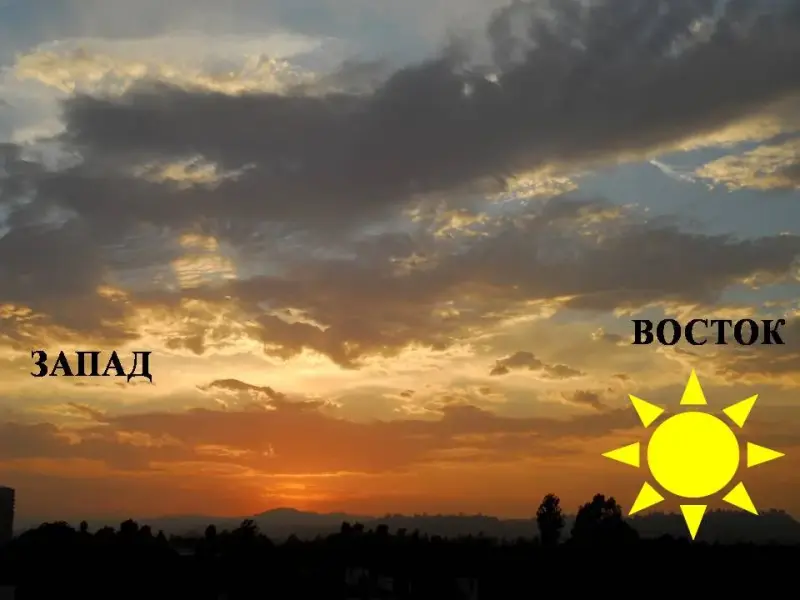 Секундная стрелочка: А днём часами по-прежнему служило солнце. Оно перемещается по небу с востока на запад. Кстати, названия этих сторон света как раз означают стороны, где солнце восходит (востекает) и заходит (западает). (слайд 10)