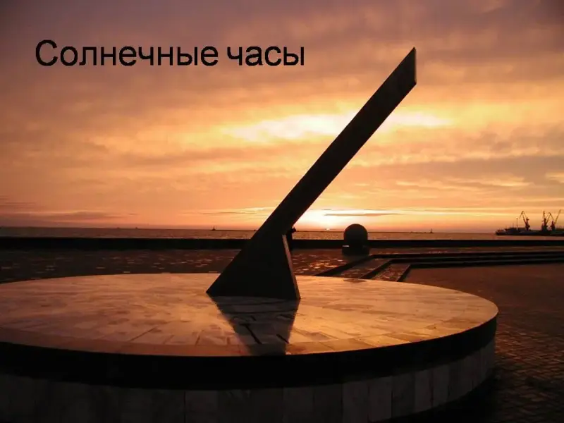 Часовая Стрелочка: Предметы считать просто: один, два, три, четыре... (загибает пальцы). А как посчитать время? Человеку пришлось искать мерку в природе. Самыми древними "часами", которые никогда не ломались и не останавливались, было солнце. (слайд 7)