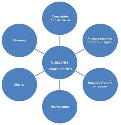 - Подведение к составлению общей схемы: какие средства в рассказе помогают создать комическую ситуацию? Составляем схему-ромашку, которая должна получится неполной