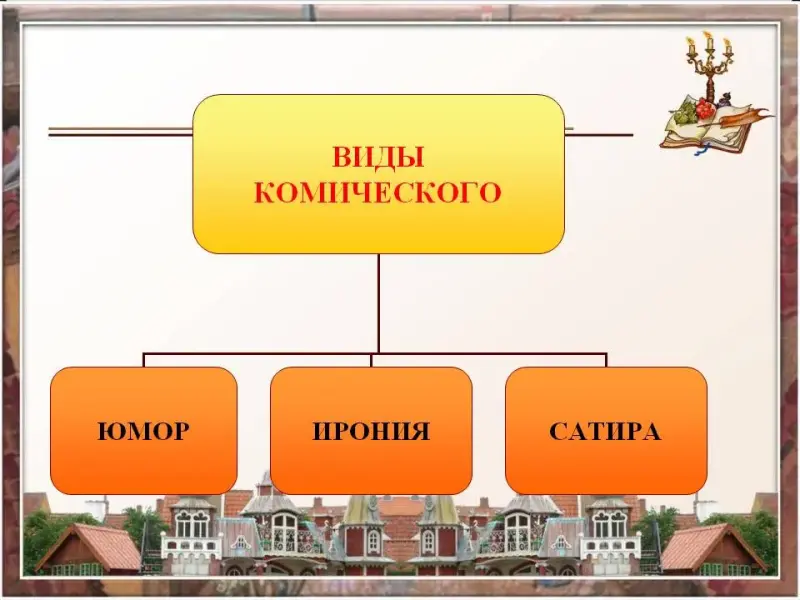 Учитель: Давайте вернемся к тексту, который мы вместе с вами создали, и посмотрим, какой вид комического мы использовали (Конечно же, юмор)