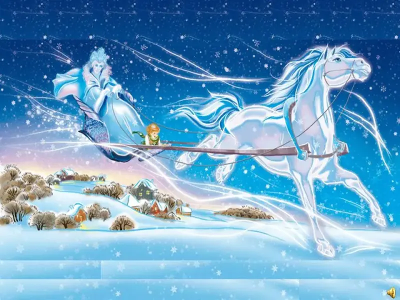 Но однажды, когда Кай съезжал с горы, налетел снежный вихрь, подхватил Кая, и унес его куда-то далеко. Она бежала за ним, кричала, но не смогла догнать его.