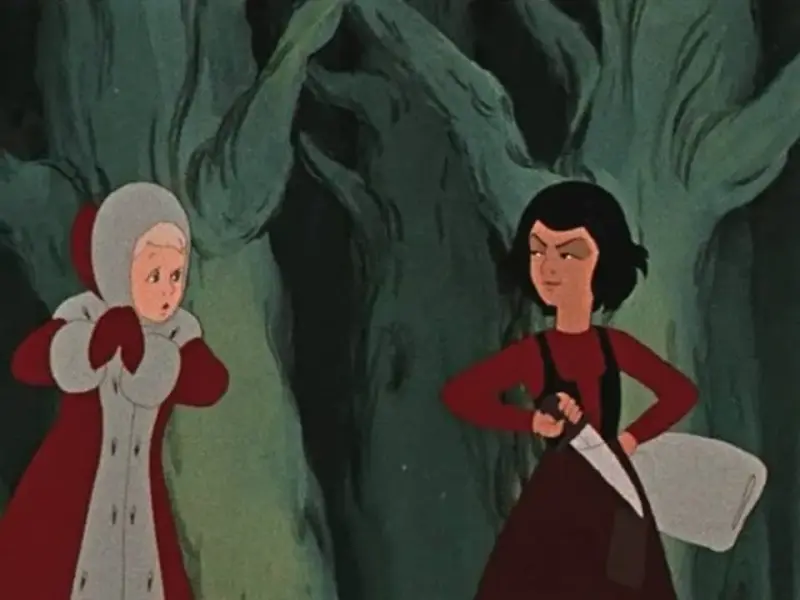 Но вот однажды, когда Герде пришлось идти через лес, навстречу ей выскочили разбойники.
