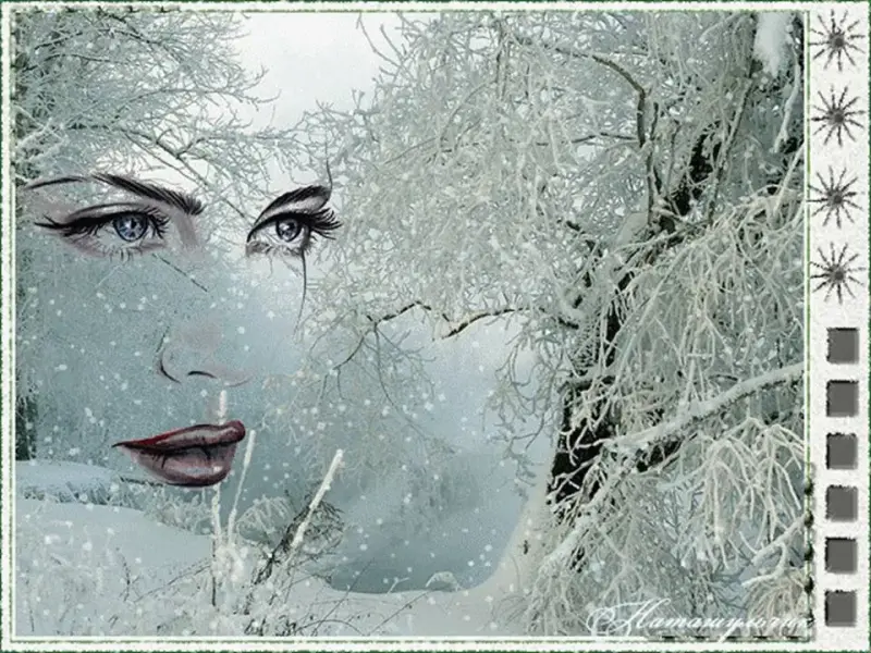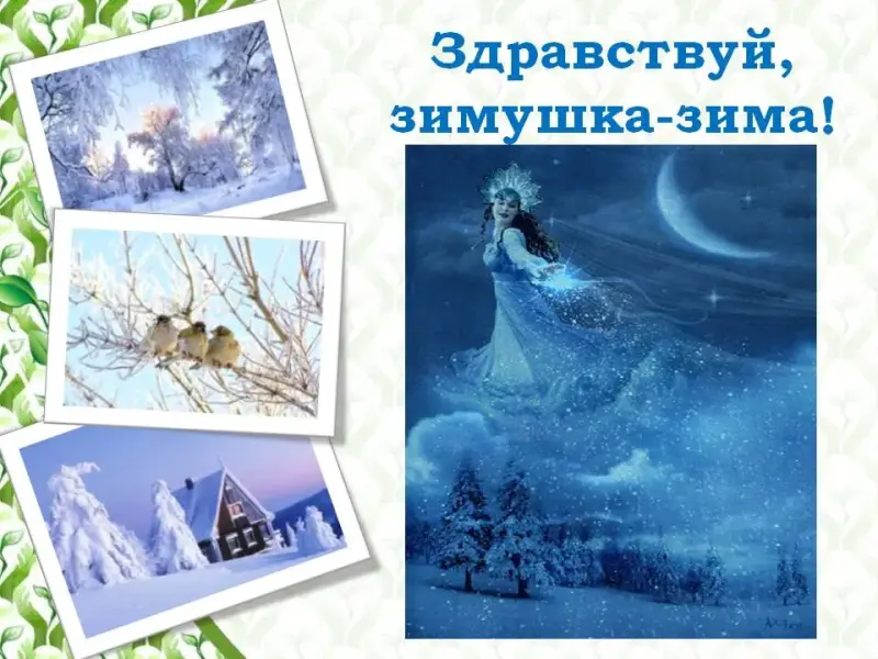 1 ученик: Самая старшая из сестёр - Зима. Любит она всё белоснежное, мягкое и пушистое. А вот характер у неё строгий. Не любит она, когда ей перечат, печей не топят, у огня не греются. Рассердится Зима, морозом так дыхнёт, что даже деревья трещат.