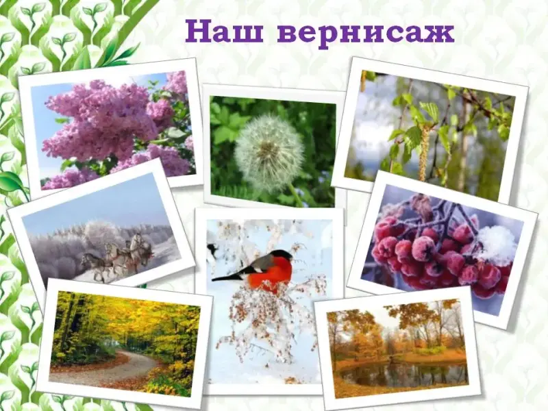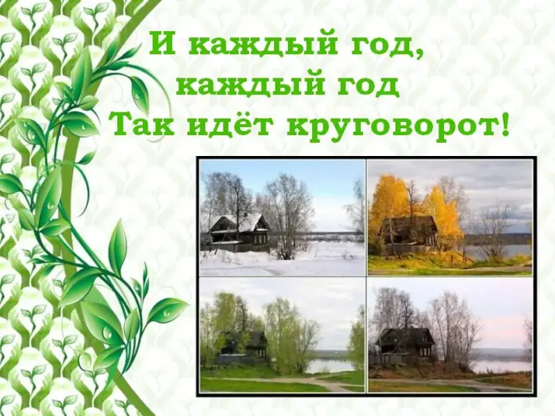 Учитель: Природа умеет удивлять своими красками и настроением в каждое время года. Весна - радость и пробуждение, лето - благоухание и свежесть, осень - усталость и грусть, а зима