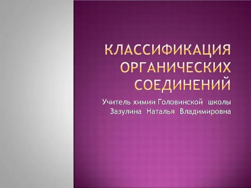 "Классификация органических соединений". 10-й класс