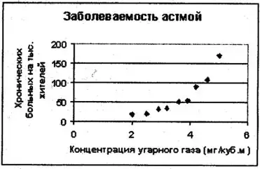(На плакате таблица с прошлого урока): зависимость заболеваемости астмой от концентрации С: