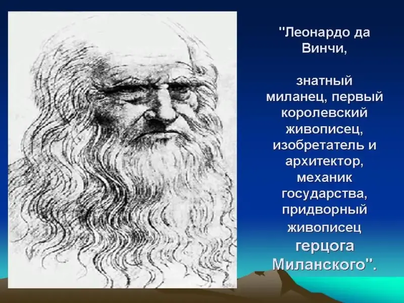 "Леонардо да Винчи, знатный миланец, первый королевский живописец, изобретатель и архитектор, механик государства, придворный живописец герцога Миланского".