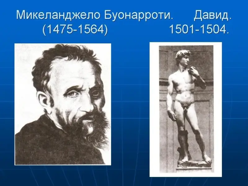 Следуют подготовленные сообщения о жизни художника, доклады о скульптурном и архитектурном творчестве (3-5 мин.), обсуждение самых известных скульптурных работ "Давид"