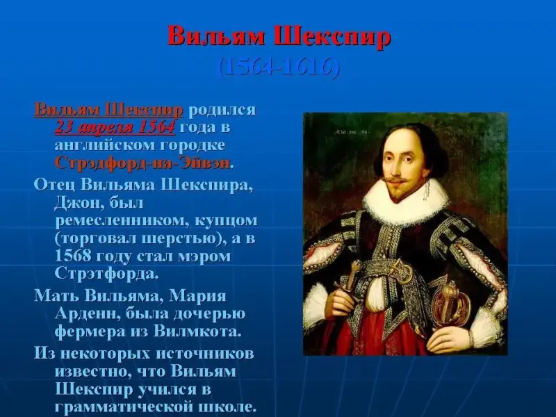 Биография Шекспира. Индивидуальное сообщение учащегося.