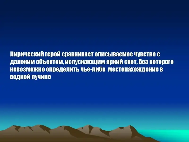Лирический герой сравнивает описываемое чувство с далеким объектом, испускающим яркий свет, без которого невозможно определить чье-либо местонахождение в водной пучине.116