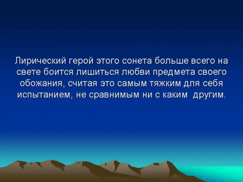 Лирический герой этого сонета больше всего на свете боится лишиться любви предмета своего обожания, считая это самым тяжким для себя испытанием, не сравнимым ни с каким другим. 90