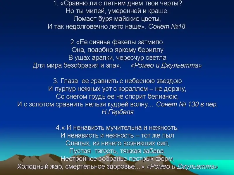Для мира безобразия и зла". "Ромео и Джульетта".Глаза ее сравнить с небесною звездою
