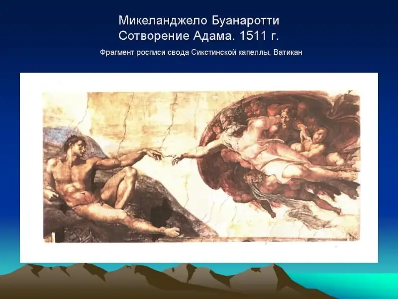 "Это была эра титанов Возрождения, подарившая миру творчество Леонардо, Рафаэля, Микеланджело. В истории мировой культуры эти гении, несмотря на всю их несхожесть, творческую индивидуальность, олицетворяют главную ценность итальянского Возрождения - гармонию красоты, мощи, интеллекта. Каждый из этих гигантов по-своему велик. Творчество каждого представляет собой пик культуры Ренессанса. .